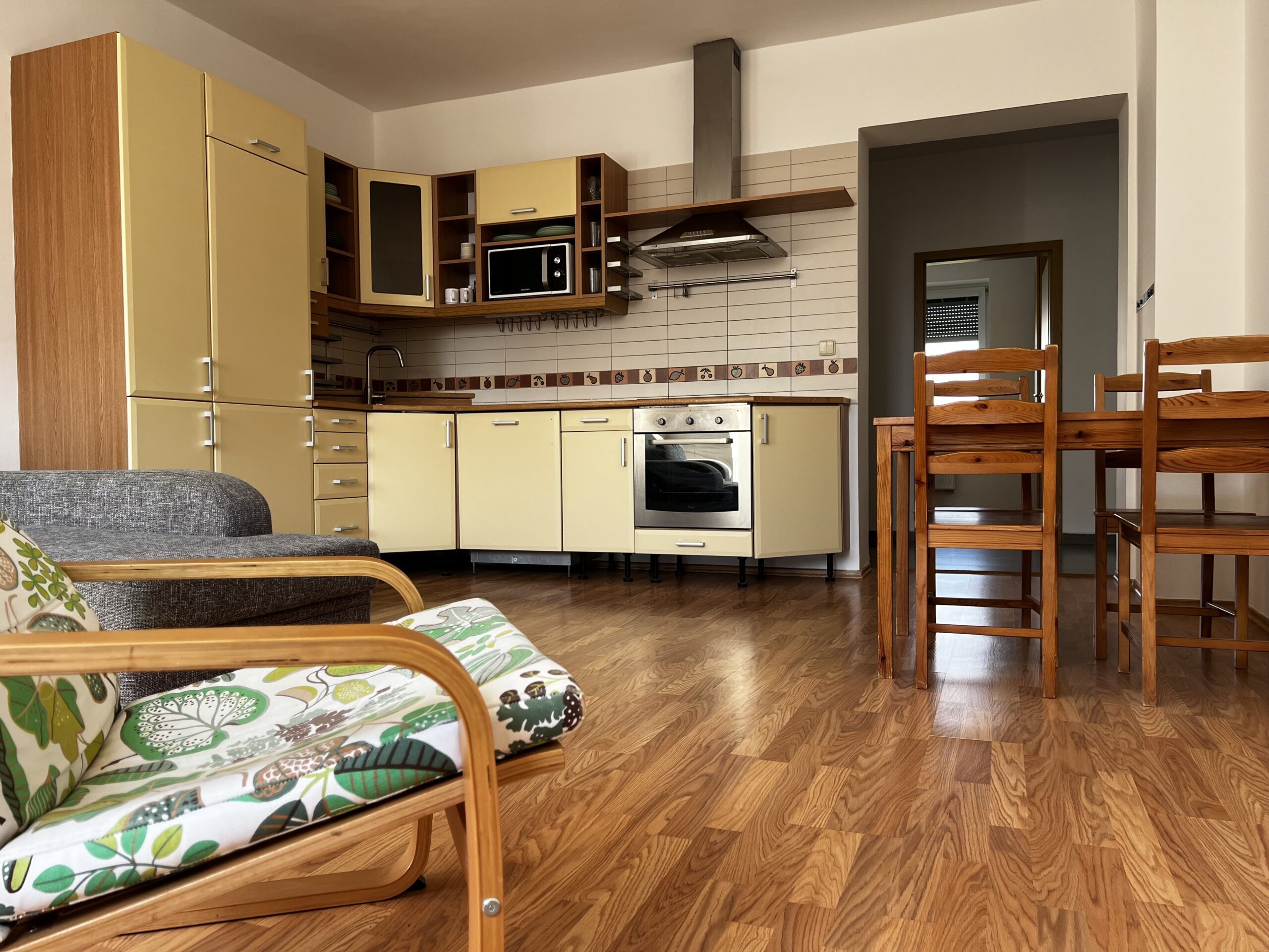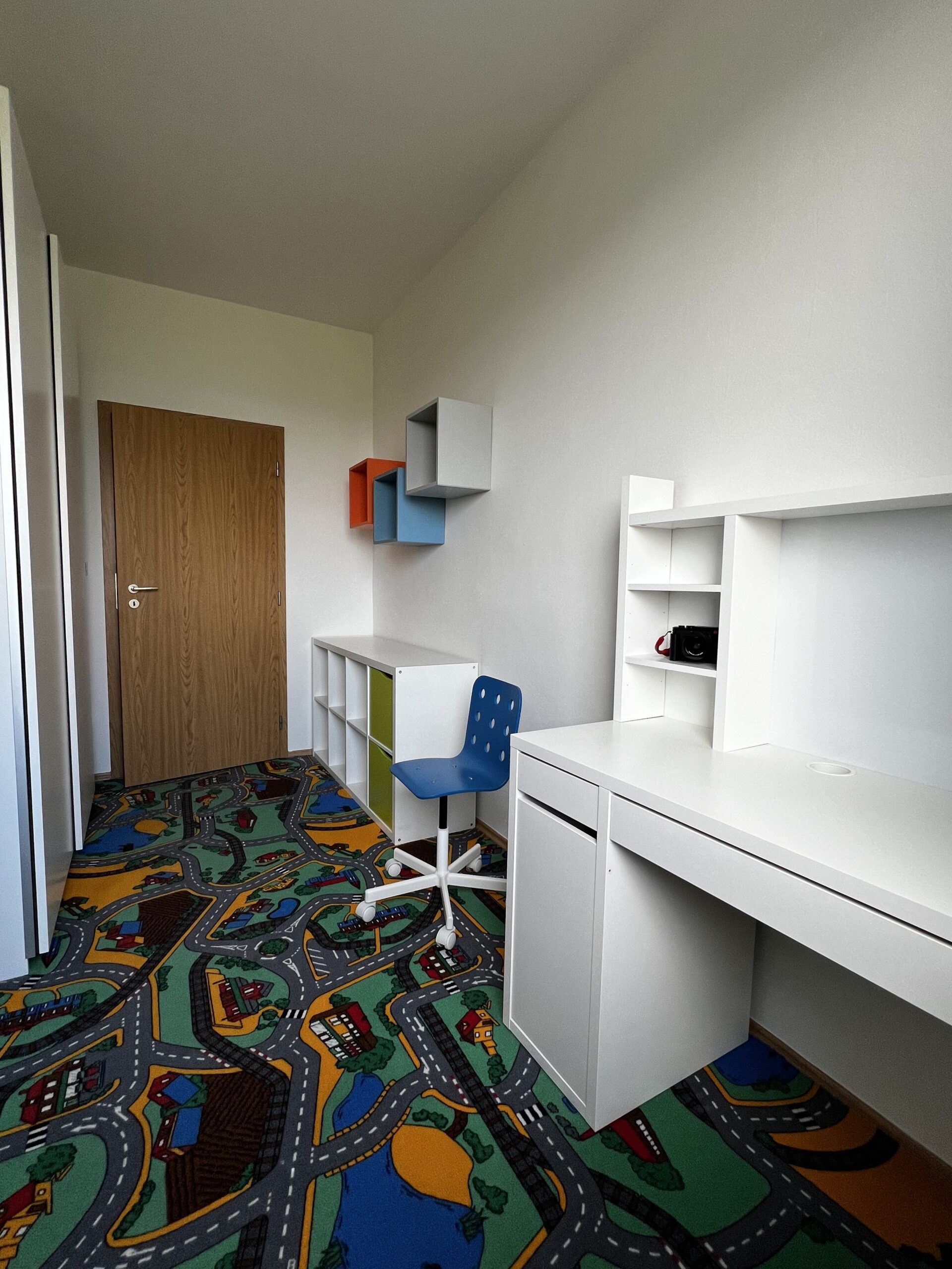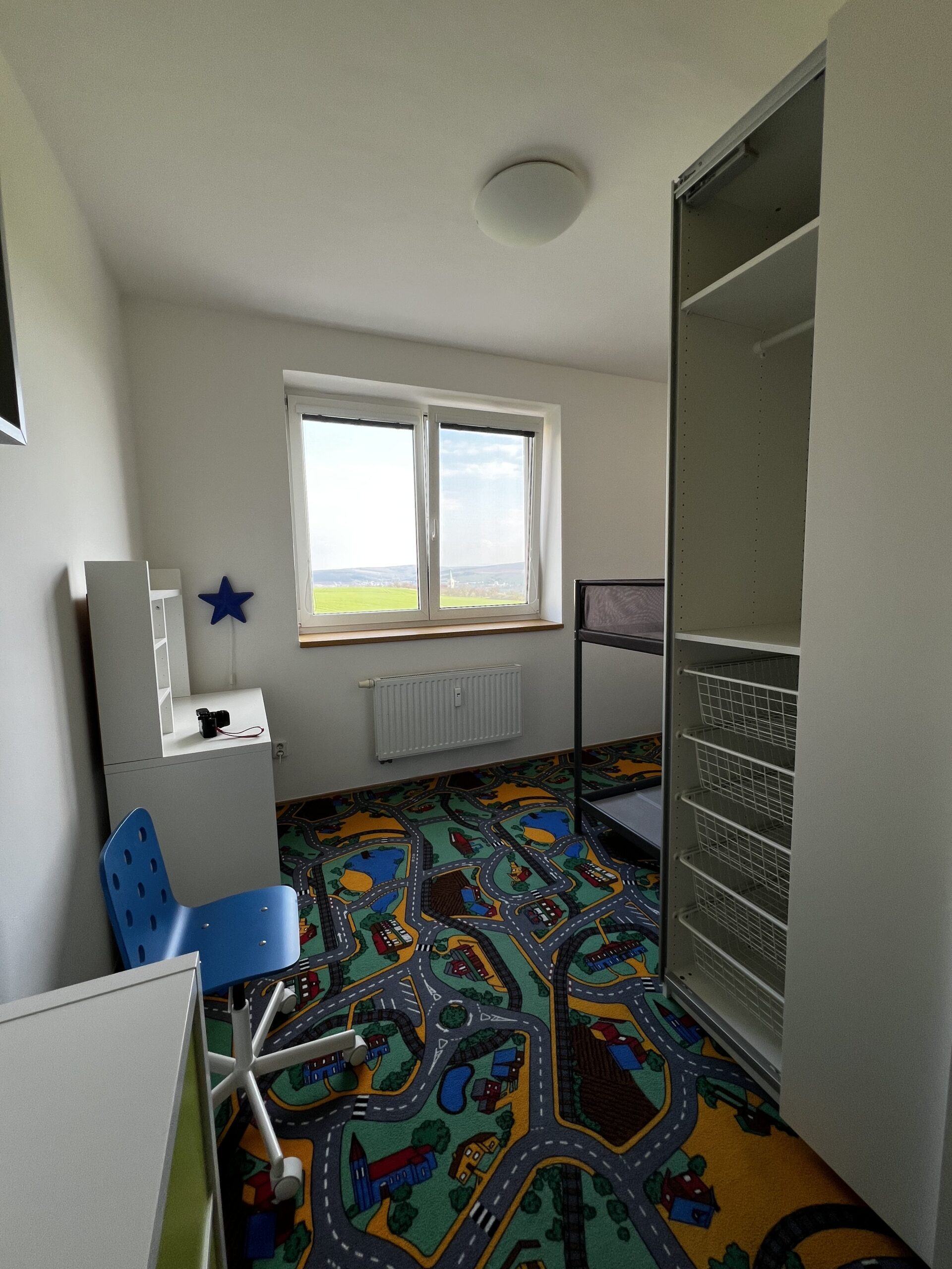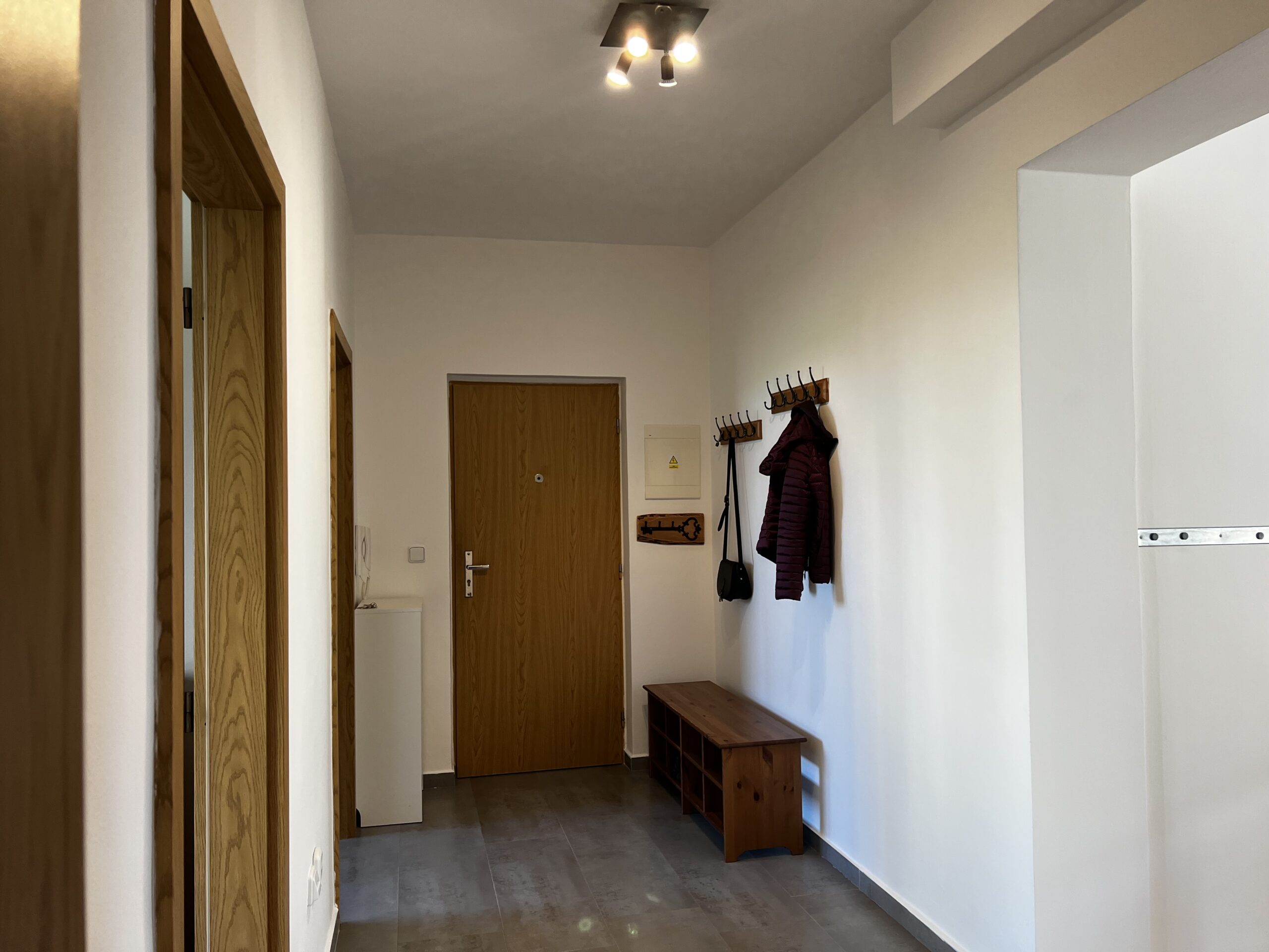 Byt je vymalovaný, volný ihned k nastěhování. Prodává se s částečným vybavením uvedeným na fotografiích. V ložnici je velká šatní skříň, komoda, manželská postel, noční stolky, zrcadlo a v okně venkovní rolety. Dětský pokoj plně vybavený nábytkem – patrová postel, psací stolek se židlí, police, velká šatní skříň, koberec. V obývacím prostoru s kuchyní je k dispozici rohová roztahovací sedací souprava a jídelní stůl se 4 židlemi, křesílko. Kuchyňská linka s elektrospotřebiči, vestavěnou lednicí, myčkou. V chodbě je botník a odkládací stěna. Bytová jednotka stejně jako celý bytový dům jsou v dobrém udržovaném stavu. V okolí je veškerá občanská vybavenost. Prohlídky možné kdykoliv po předchozí telefonické domluvě.